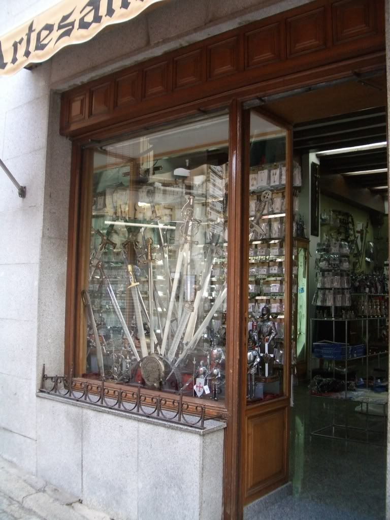 Needless to say, the Church was a definate highlight! We spent a good time exploring the old place, and his son`s buddy soon was getting tired of all the walking! Our group then ventured outside, and I checking my watch- it was heading on 4. Hm. I still needed to stop and look at some sword shops to cure my curiosity, so I bid my new friends a hearty farewell, they in turn. One of the nicest bunch of Spaniards I had met in my stay here in Spain!