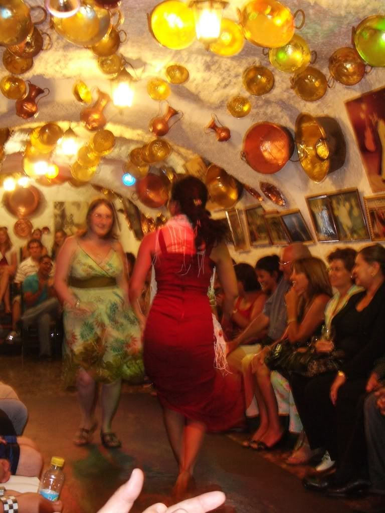 The place was packed with Spaniards! There was barely enough room for us to squeeze through, but it wasn`t necessary as there were at least 5 televisions, (ranging in size from very big to medium) all over the place! We clustered with the large assembly around the larger television, and watched the intense game. The atmosphere was a bit smokey, so at about halftime we ventured outside to grab a cheaper tapas at the resturant next door, and enjoy some fresh air. The waiter definately liked my t-shirt, because I didn`t order anything, and still got a free tapa sandwhich. Que bueno suerte!