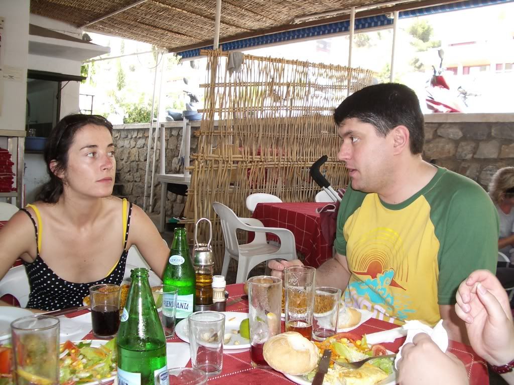 After hanging there for most of the afternoon time we had, we petted our friendly cat good-bye, and then headed up to meet up with the rest at 2 PM. We had lunch at a nearby Italian restaurant, I having tasty spaghetti for lunch: the rest enjoying crispy pizzas. After lunch, we walked over and had some excellent ice cream on such a hot day. Finally it was coming on 4 PM, and to make it back to Granada in time for the futbol game, we piled back into Jaime`s car, and made the way back home, after a successful weekend at the beach.