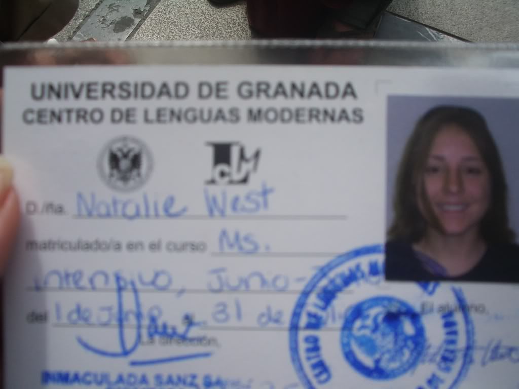 We then walked down a long calle (Spanish for road) to visit our last stop of the day, a huge park for all of the people, and specifically the students, to go and play sports. A lot of people were there when we went, and Inma said if we wanted to play sports, as students, we were more than welcome to participate in weekly sports as long as we had a student id! (Which, as a thought, I did receive one for the University of Granada before the tour. Here’s the picture: Soy un estudiante!)