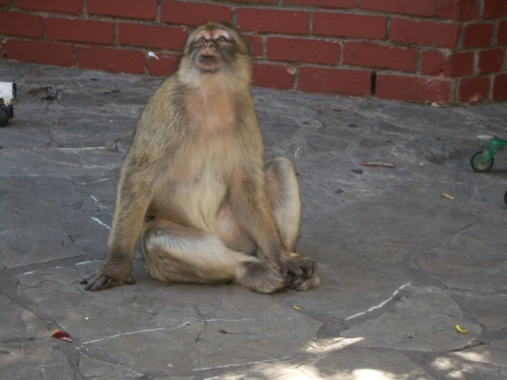 Lo and behold, there was a famous ape of Gibraltar! It was simply sitting right outside the door! Wow- I definately did not see that one coming! I took my camera out as a typical tourist and began shooting pictures, when the monkey suddenly walked inside the complex. It had no fear of me or the other tourists taking pictures, opting to sit down and study us as well: