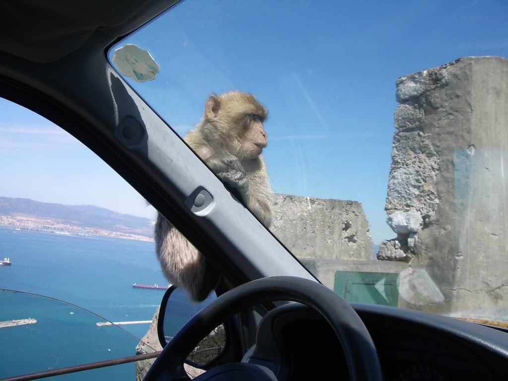 My group finally came out of the class, and we all made our way to the van, I having the delight of retelling my tale of monkey thievery. Our tour guide nodded as I explained along- he regarded the Apes as pests, and I could see why! However, as pesty as they are, there is a superstition about them- as long as there are Apes on Gibraltar, the Brits will stay-but soon as they leave, so will the English- so as long as they are there, I guess the monkeys stay too!
